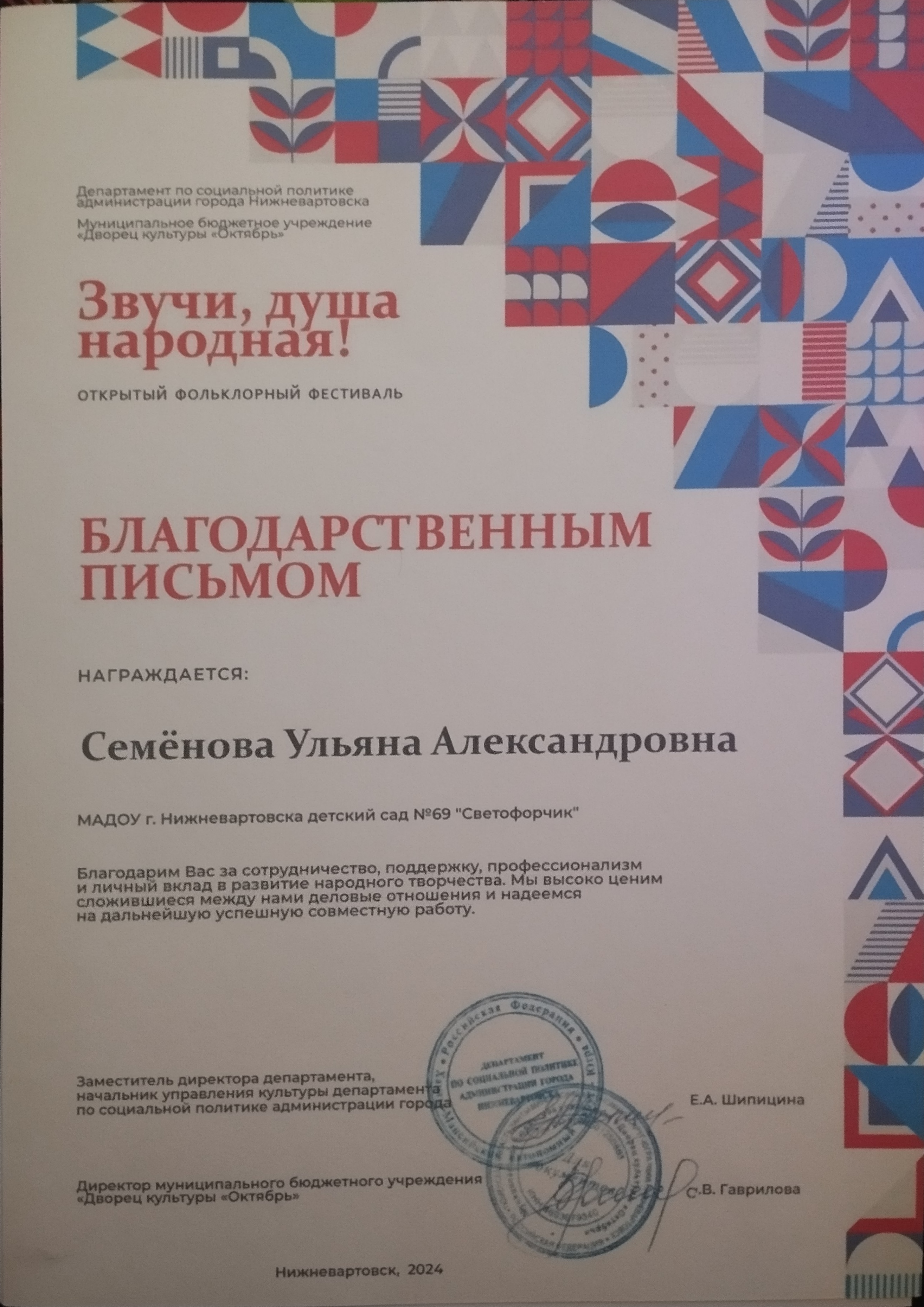 Сайт музыкального руководителя Семёновой Ульяны Александровны